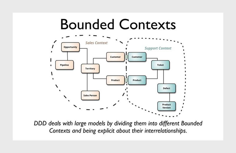 همان طور که اشاره کردیم، Domain Driven Design همه چیز را میشکند. برای درک بهتر موضوع، به مکانیزم مغز انسان دقت کنید. وقتی مغز انسان با یک مسئله پیچیده روبهرو میشود، آن قدر مسئله را به بخشهای کوچک تقسیم میکند تا راه حل آن قسمتهای کوچکتر را در حافظهاش پیدا کند. بعد همه قسمتها را با هم ادغام میکند تا به جواب مسئله اصلی برسد. مفهوم Bounded Context یا محدودیت زمینه پژوهش، به محدودیتهایی اشاره دارد که باید در DDD به آنها توجه کنیم.